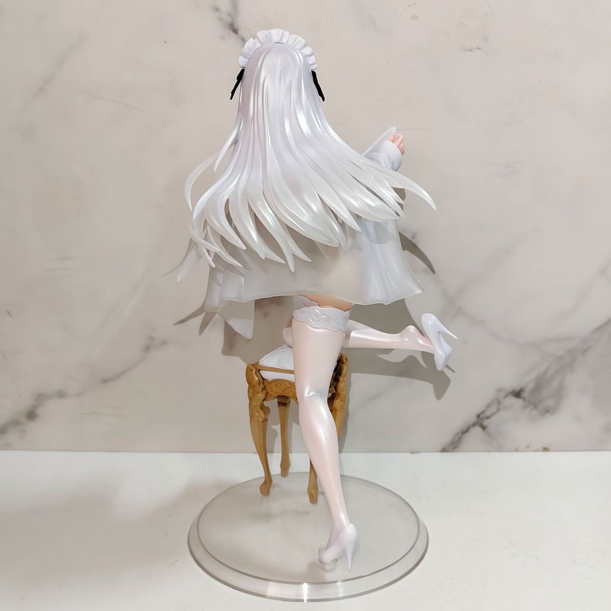 Premium 26cm White Stockings Maid "Bonita-chan" Poseable Figure - Elegant Chair Pose Edition